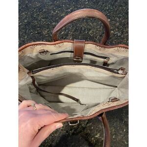 Vintage Dooney & Bourke Large Brown Monogram Satchel Tote Bag