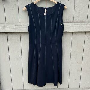 Anthropologie Bailey 44 Little Black Dress With Faux Leather Details. Would make a great little cocktail or date night dress, it is in very good pre-owned condition with no flaws. The dress has flattering vertical faux leather piping details that run the entire length of it. Very Rocker Goth Punk Steampunk Chic. The material is super soft and does have a little stretch to it rayon, nylon and spandex blend dry clean only.