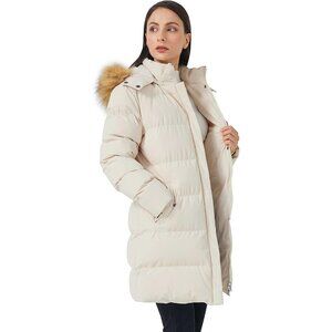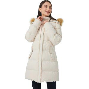 Women's Beige Winter Thicken Puffer Coat Warm Jacket With Removable Hood