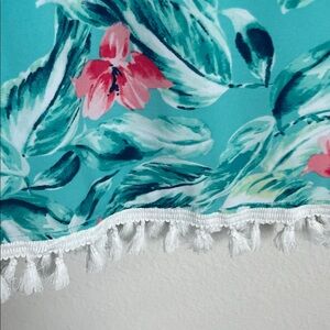 Pappagallo Tropical Floral Tank Top with Tassel Hem