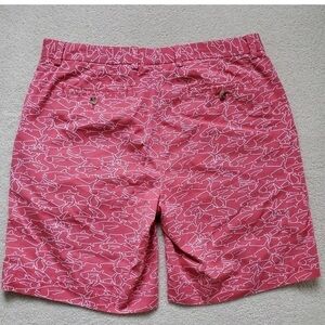Vineyard Vines Men's Breaker Shorts Salmon and White Shark Fish Outline sz32 Great muted coral colored, 100% cotton shorts with fish/skark pattern. Measurements in photos.