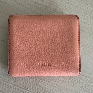 Chic Fossil wallet in coral leather. Perfect for daily essentials. Stylish and compact.
