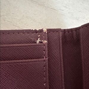 Please see last 2 photos for wear to interior, coral leather has some darkened wear discoloration as well