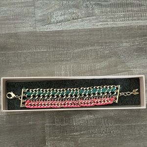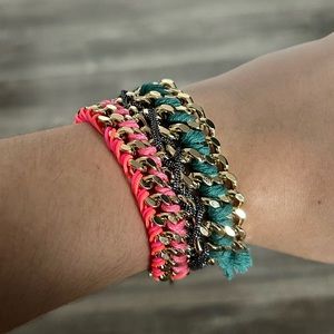 Make me offers & bundle! Has gold, teal and pink colors with lobster closure clasp. Never been used, new in box. Retails $78. Add a touch of boho-chic elegance to your jewelry collection with this stunning Victoria’s Secret gold-tone bracelet. Featuring a unique multi-strand design that combines soft braided fabric with delicate chain links, this bracelet exudes a perfect blend of edgy and feminine vibes. A signature Victoria’s Secret angel wing charm adds an iconic finishing touch, symbolizing confidence and allure. Perfect for layering or wearing solo, this statement piece is versatile enough to complement any outfit, from casual daytime looks to evening ensembles.