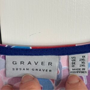 Susan Graver Fuchsia Blue Floral Liquid Knit Stretch Tunic Ruched L/S Sz 1X Top