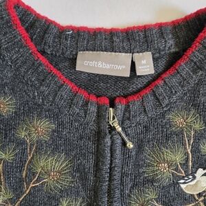 Croft& Barrow cardinal chickadee birds nature embroider zip sweater ramie silk M