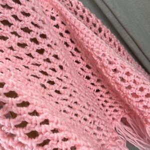 Handmade Pale Pink Open Knit Fringed Boho Shawl Scarf Open Poncho Western Wrap