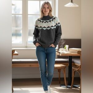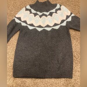 Banana Republic Fair Isle Sweater Women's L Gray Blue High Neck Relaxed
