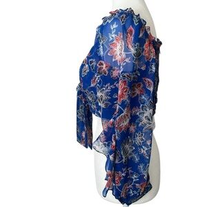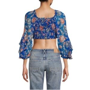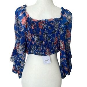 NWT MISA Los Angeles Ancora Blue Floral Chiffon Tie Front Cropped Top Reg. $275