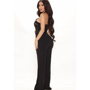 Fashion Nova ✦ Excuse You Lace Halter Jumpsuit ✦ Black Wide-Leg Belted Sheer XS
