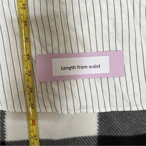 New with tags, but has some faded stains on sleeves and bottom of dress, not very noticeable (see last two photos). This is a wrap asymmetrical dress. The waist strings can be tied in the back or to the side. It is cotton blend. Pattern is vertical black pin-stripes. Perfect for travel or any summer outing. It is a long dress about 52 inches from shoulder. Please see all photos for condition and measurements.