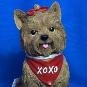 THIS IS A NEW WITH TAG ABSOLUTELY GORGEOUS & ADORABLE REALISTIC LOOKING YORKIE / YORKSHIRE TERRIER LOVE KISSES & HUGS DECOR STATUE / FIGURE THAT HAS THE CUTEST YORKIE PUPPY DOG WITH A RED TOP KNOT BOW & A HUGS & KISSES SCARF / BANDANA AS SHOWN! THIS BEAUTIFUL YORKIE DECORATION IS IN VERY NICE CONDITION & THIS IS DEFINITELY A MUST HAVE FOR ANY YORKIE OWNER / COLLECTOR / LOVER &/OR ALSO FOR VALENTINE'S DAY !
