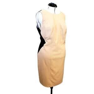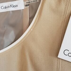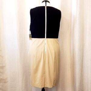 Keywords: Calvin Klein, sheath dress, colorblock, black and tan, size 18W, plus size fashion, career wear, cocktail dress, tailored fit, office chic, elegant style, timeless fashion, curve flattering, versatile dress, statement piece, classic silhouette, professional look, upscale casual, closet essential