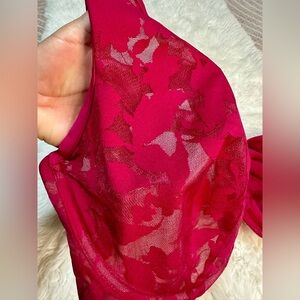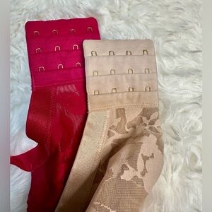 Third Love Unlined Foliage Perfect Coverage Fuchsia Lace Beige Nude Bra 38 F Set