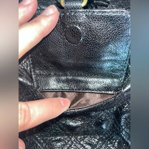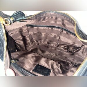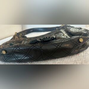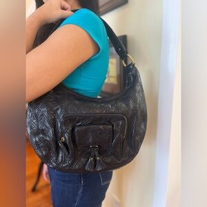 Antonio Melani Black Hobo Bag Glazed Quilted Leather Cargo Pockets Front U Bag