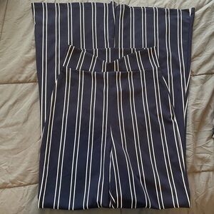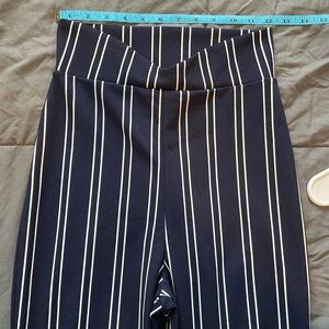 Fashion Nova navy blue and white striped tight flared pants, size S, measurements in photos!