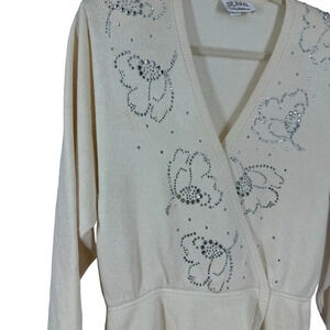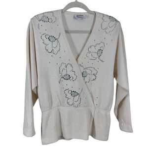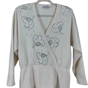 Vintage St John for Saks Sweater with bejeweled floral pattern 10 medium