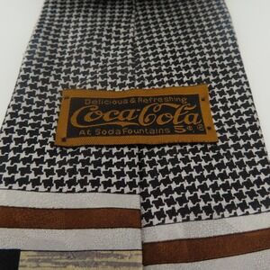 CocaCola Tie Silk Black Herringbone 4" Wide 48" Long USA Vintage