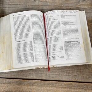 CONDITION- Has signs of age and use, including discoloration, wear spots on the spine and bottom of the cover, staining, patina, lots of writing inside, small texture issue on a spot in the cover, and tape residue on the front and back covers (shown in pictures)