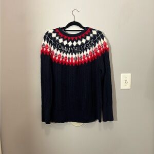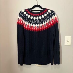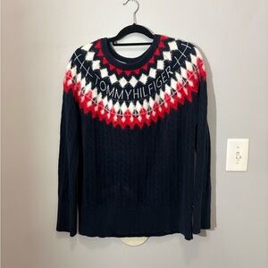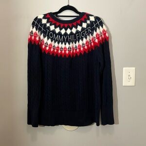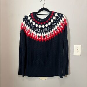 Tommy Hilfiger Women's Sweater in Navy with Red and White Pattern