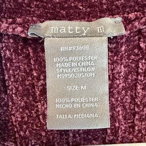 Matty M Women's Size Medium Plush Burgundy Open Front Cardigan Sweater