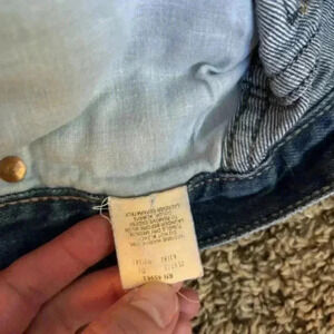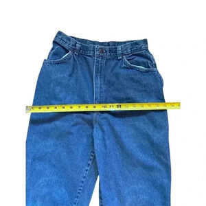 Keywords: vintage jeans, high-rise jeans, women's denim, medium wash, spiral detailing, Sears jeans, regular fit, blue jeans, women's fashion, pre-owned jeans, classic style, unique design, timeless fashion, denim pants, high waist jeans.