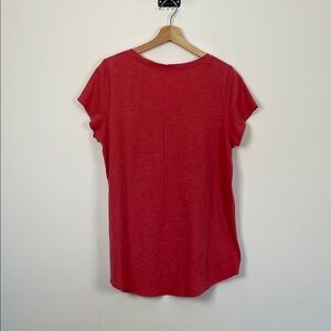 Eileen Fisher Organic Cotton Short Sleeve Women L Red V-Neck Pullover Tunic Top