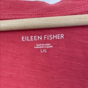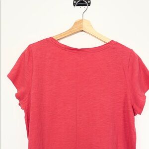Eileen Fisher Organic Cotton Short Sleeve Women L Red V-Neck Pullover Tunic Top.