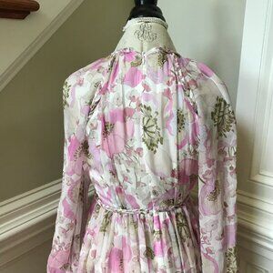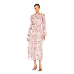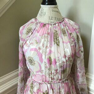 Zimmermann Super 8 Midi Dress Womens 1 Small Pink Silk Long Sleeve Floral Braid