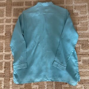 J Jill Love Linen Essential Shirt Aqua Sz M EUC