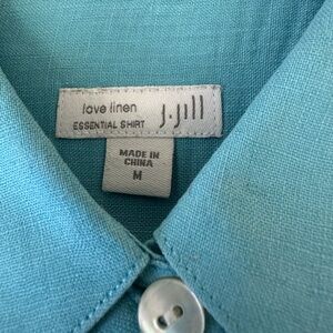 Classy J Jill Love Linen Essential Shirt Aqua Sz M EUC