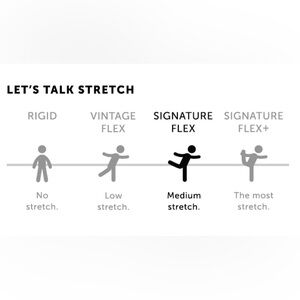 • Signature flex fabric: medium stretch, with the perfect combination of structure and give.