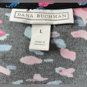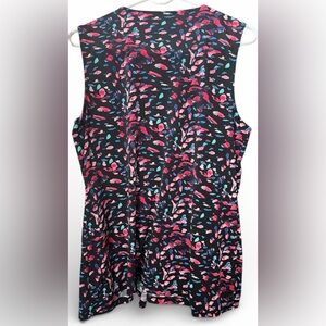 Dana Buchman Floral Sleeveless V-Neck Blouse Size L Black Pink Blue Work Top
