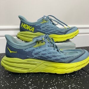 Hoka One One Speedgoat 5 men’s 8.5D Athletic Shoes in Blue and Neon Yellow