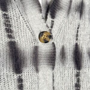 Cozy button up cardigan knit sweater by Sundry in a super soft cashmere wool blend. Featuring all-over tie dye in black and hues of grey.