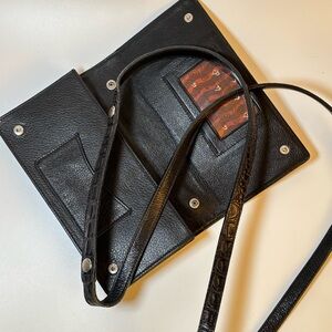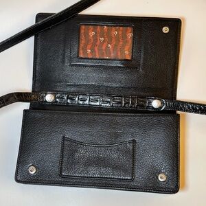 Brighton Vintage Black Crocodile-Embossed Clutch folding Crossbody Wallet