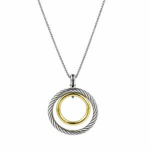 Elegant David Yurman Mobile Pendant Necklace featuring a sterling silver box chain with two circular pendants: twisted cable sterling silver paired with smooth 18K yellow gold. Classic mixed-metal look that layers beautifully or stands alone for everyday polish. 17.5” chain with circle clasp; pendant approx. 1.5” long. Materials: sterling silver and 18K yellow gold. Very good preowned condition. Same day or next-day shipping.