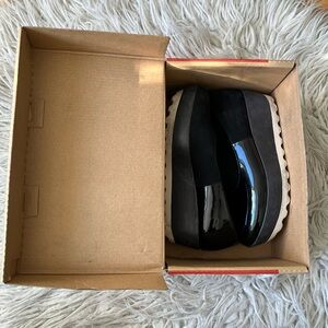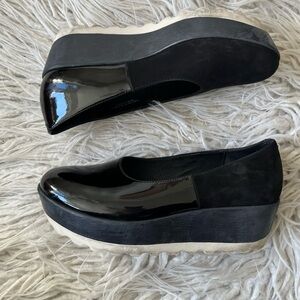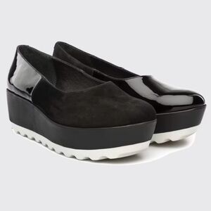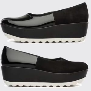 Camper Twins Black Suede Patent Leather Patch Platform Wedge Shoes EUC Size 37