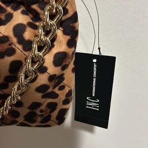 INC Leopard Print Shoulder Bag with Adjustable Strap and Gold Chain Detail