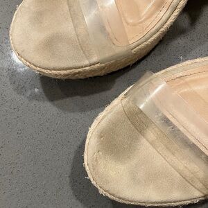 Shoe Dazzle Cream Wedge Sandals with Clear Straps