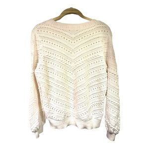 Perfect for all seasons. Crewneck Loft White Cream Pom Pom Open Weave Knit Sweater