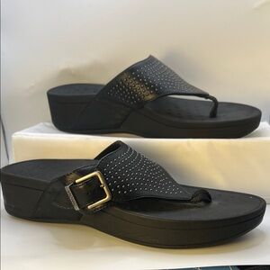 Vionic Black Studded Wedge Sandals-Women's-Size 9-Casual-Comfy-Vacation-Adjust