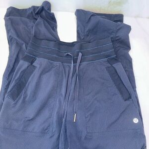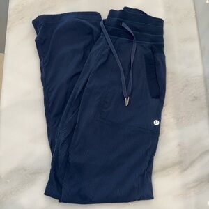 Stylish and comfortable navy blue dance studio pant perfect for before, during, & after workout. Features a sleek design with a drawstring. Great condition.
