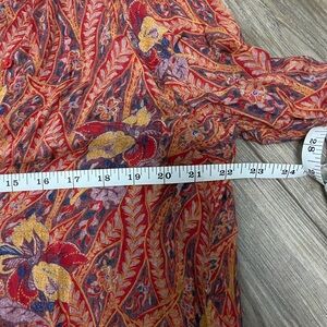 Lucky Brand Red and Purple Floral Paisley Button Down High-Low Hem Blouse MD