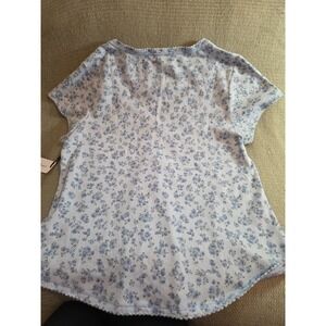 Laura Ashley Blue Ditsy Floral Fine Ribbed Shrt Sleeve Henley Soft Top NWT Sz XL