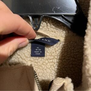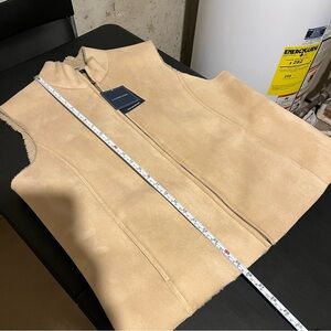 LANDS END Faux Suede Leather Vest NWT Camel Tan Womens XL Sherpa Lined Coat Zip