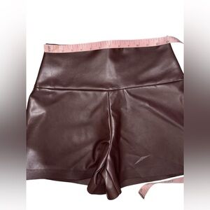 NWOT Norma Kamali Women's Chocolate Brown Straight Leg Faux Leather Shorts XS