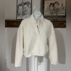 PAC Sun cropped Cozy White fleece pullover Sweater with snaps |Sz S | scandigirl