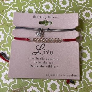 2 Adjustable Bracelets.Red With Crystals, Gray With Sterling Turtle Charm. NWT