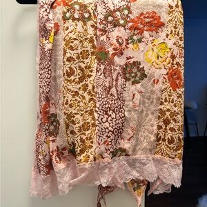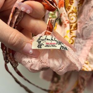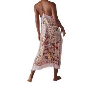 FP satin dress in EUC - gently worn then cleaned, so it's ready for a new home! Shows minimal signs of wear w/nothing glaring to note. Sultry and essential, this stunning slip features a V-neck silhouette w/ mixed print design and lace trimming for a femme finishing touch. Any creasing and/or wrinkling is from storage. US women's size XS (but could fit S as well). Details: